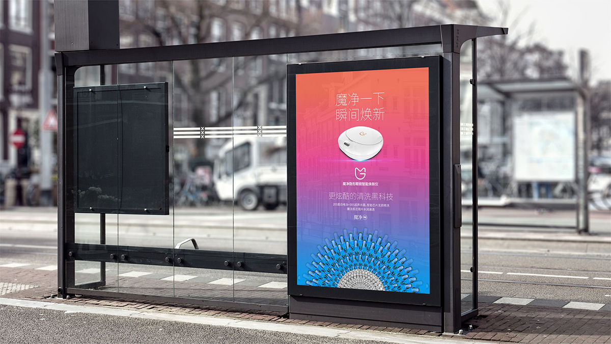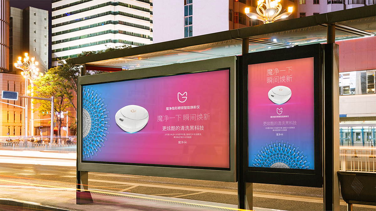 緊扣品牌定位,結合品牌科技屬性,與目标消費人(rén)群時(shí)尚、愛(ài)美(měi)的(de)特點,爲魔淨打造了(le)全方位的(de)品牌形象,從整體到細節體現了(le)品牌美(měi)麗、自由、時(shí)尚、科技、清潔的(de)屬性。